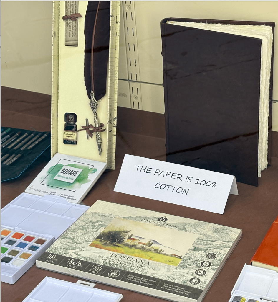 It took about a year to complete them all and we both had so much fun, both for me writing them and reliving all those years and holidays and adventures, but also for him it became something to look forward to. And you can argue after what he did, he deserves nothing at all, but I don’t judge and I now know some of what went down.  What was also funny was, anything that arrives into the Prison Postal system, as a printed piece of mail, has to be read and approved by someone in the office. Now bear in mind some of these stories were over 4 or 5 pages of A4 long, he one day messaged me to say the most recent letter had been impounded as they said it was printed on cotton. A risk that it could potentially be impregnated with narcotics. We did laugh as it was a bog standard sheet from WH Smiths, but it meant I had to resend it again. This summer I was passing a hand made notepaper shop in Tuscany and started laughing at the shop window… of course I took a photo and sent it to him.