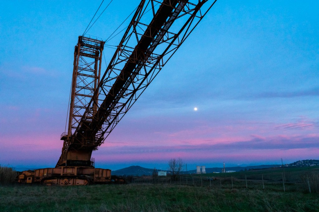 That vast plain that I look down on, and drive across most days, was once… well actually I need to go back further than a little bit, in fact a bloody long way back, to 1.8 million years ago, in the Pliocene Era. It was from this time period and the breaking down of plant matter that a huge presence of lignite, a type of brown fossil coal, settled into seams on what is now, that valley floor near Perugia. Lignite was to become so important in the region and wider parts of Italy as a fuel, so much so that in 1925 it was a justified expense to build the first power plant in Pietrafitta. By 1958 a new power plant, called “City of Rome”, including vast almost War of the Worlds looking excavators were deployed to remove the layers of soil and rock, so that an open cast lignite mine could be worked.