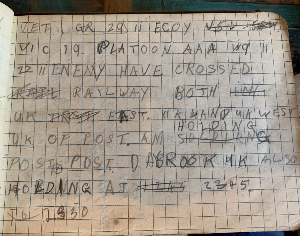 My grandfather was a bit of a writer, maybe that’s where I get it from, he wrote every day in his tiny diaries, the little ones the reps used to bring to the factory he later worked in, or that his father had brought home. He also kept war diaries and note books, with details of Morse code and translations, trench and bridge diagrams and little sketches and annotations.
