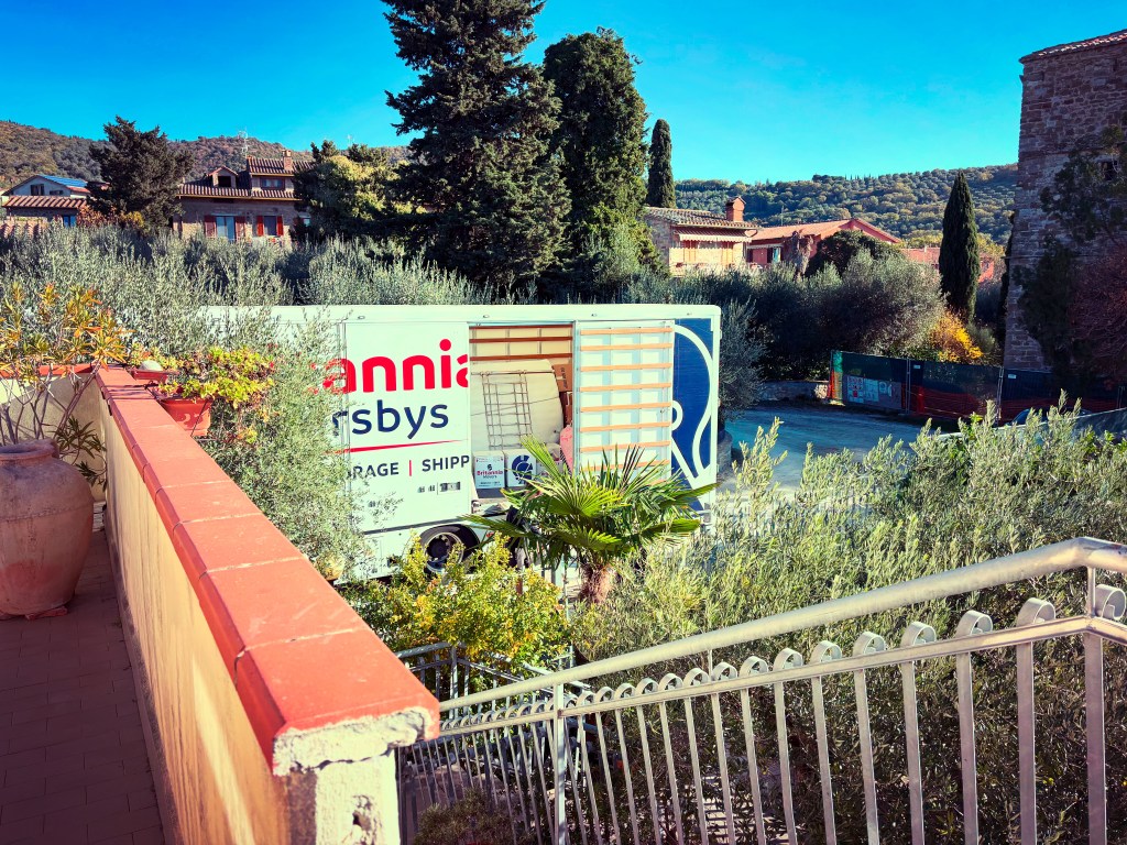 I’ve filed to change my residency in the new town and am now waiting for the rozzers to come round, unannounced (like everyone else …lol) to make sure I exist, and I am actually living here. Bureaucracy continues to be next level, I went to the comune to make my application, they’re closed on Wednesdays (who knew), so I went upstairs to sort out paying my refuse tax.  I knocked on the door which was open, and she asked me to wait outside, meanwhile her colleague walks past and told me to go in, as an open door means you can enter. But this was a ruse, as the refuse lady was on the phone, and her mate in the corridor started to laugh and tell her off for not being instantly available. She then proceeded to give me the door open/ shut protocol, while tutting at the refuse lady and eye rolling. After the comune cabaret you then have to go to the tip, (obvs also closed), to get your card, so I could start to shift the EU cardboard mountain on my veranda. Meanwhile I still have to switch my health card to the new area, I’ll save that experience extravaganza to next month.